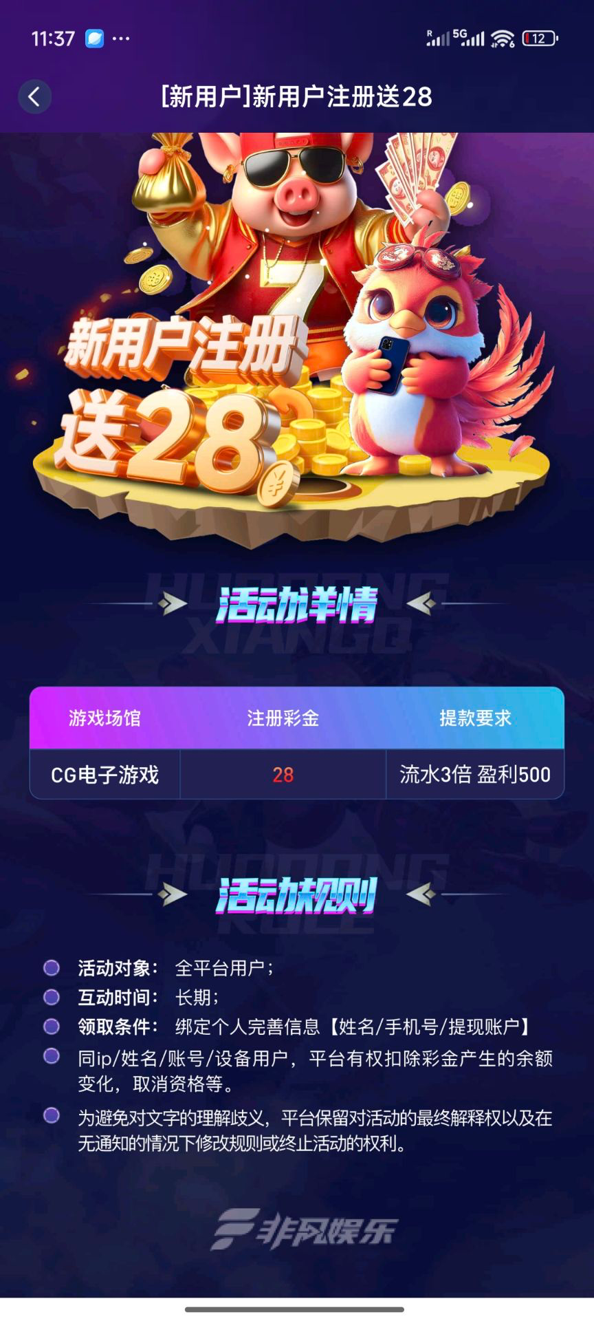 新用户送28彩金 大厅自助领取